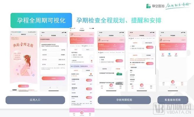 首先,是提供孕程全周期的可视化。通过对孕程检查的全程规划、提醒和安排,孕产妇可以对就医规划了然于心。这背后,其实也是对医疗资源的重新规划——它帮助医院组合了线上线下不同的医疗服务方式、组合了不同院区、不同级别医生的服务。基于贯穿整个孕产周期的预规划服务,医院本身服务效益可以得到最大化的提升。