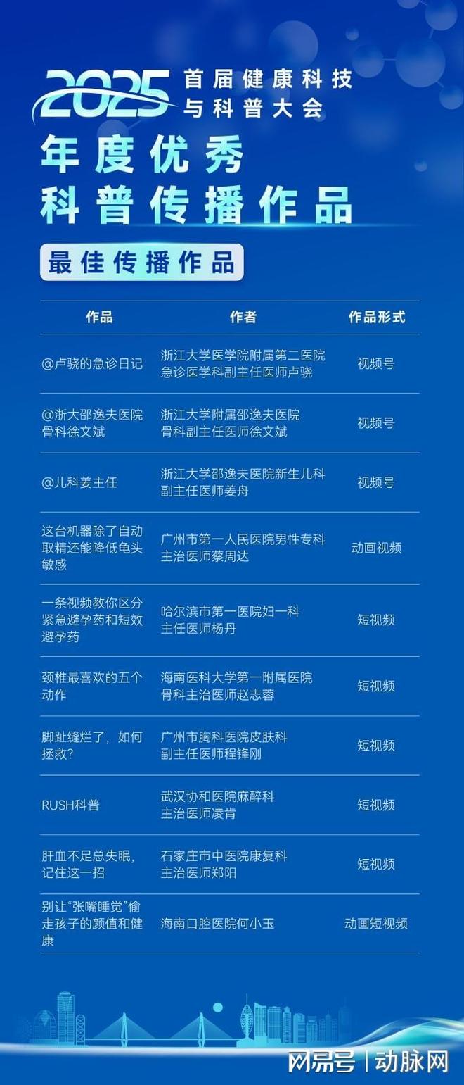 首届健康科技与科普大会年度科普评选揭晓:50位获奖者名单公布
