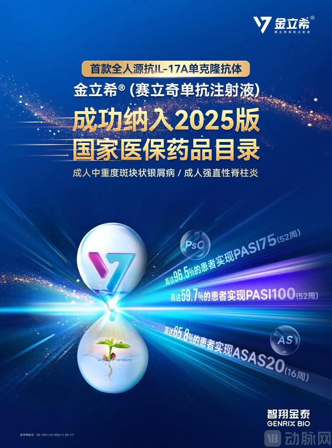 2025年12月7日,国家医疗保障局正式公布《国家基本医疗保险、生育保险和工伤保险药品目录(2025年)》(以下简称“国家医保目录”)。重庆智翔金泰生物制药股份有限公司(以下简称“智翔金泰”)宣布,其自主研发的1类生物创新药——赛立奇单抗注射液(金立希®)成功纳入国家医保目录。新版国家医保目录将于2026年1月1日起正式实施。