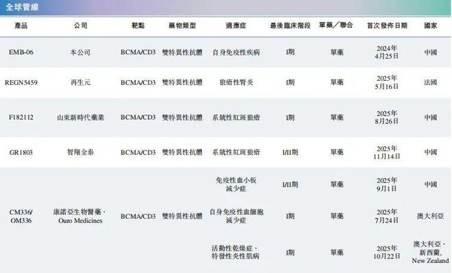 全球用于治疗自免疾病的临床阶段BCMA/CD3双抗,图源招股书