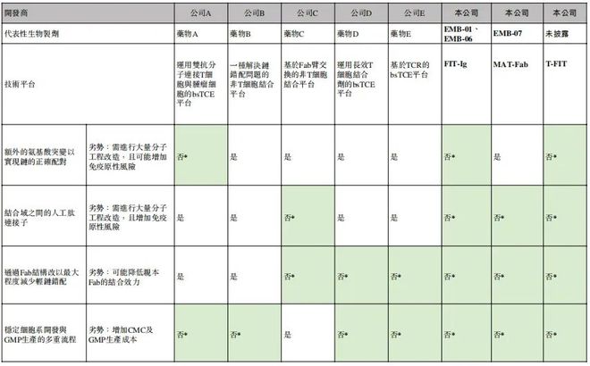 首先,TCE平台的建立存在高技术壁垒,这是一个系统性工程,需要一支经验丰富的团队,将“分子筛选与设计-安全性预测-专利突围-工艺放大-临床路径”做成闭环,任何一环掉链子,都无法继续推进管线。重要的是,拥有平台只代表企业跨进了TCE赛道的门槛,在赛道内跑得快不快、好不好,则取决于各自平台的差异化。目前,行业内TCE平台普遍存在分子工程改造较多、亲本Fab结合效力较低、CMC及GMP生产成本较高等痛点,严重影响TCE后续“赛跑”的质量和速度。