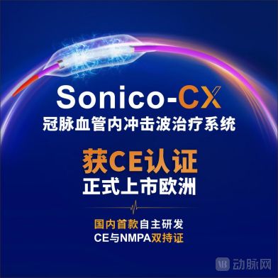 近日,谱创医疗宣布,其自主研发的Sonico-CX冠脉血管内冲击波治疗系统(IVL)(以下简称:Sonico-CX)正式获得欧盟CE认证。该系统由一次性使用冠脉血管内冲击波导管和血管内冲击波治疗设备组成,旨在通过冲击波能量安全地修饰严重钙化斑块,为后续的支架植入创造理想条件。