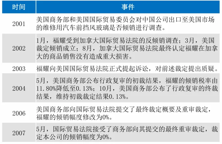 (美加政府对福耀玻璃反倾销调查始末,来源:东吴证券)