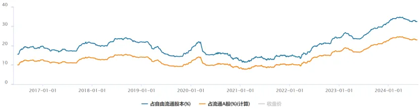(北向资金持有福耀玻璃占比,来源:Wind)