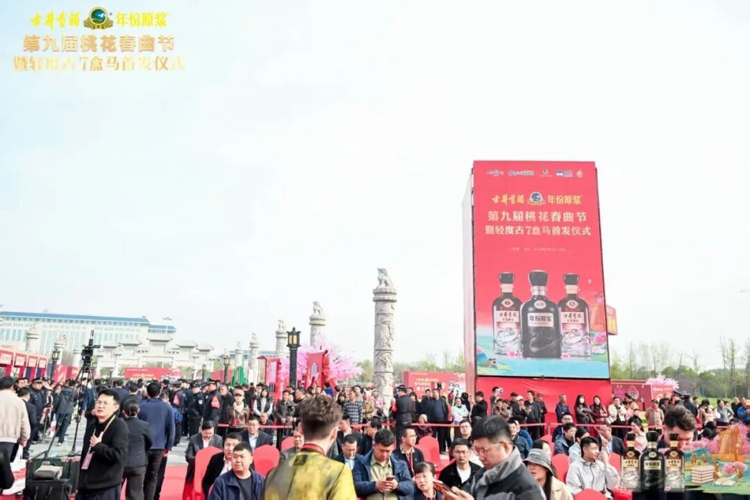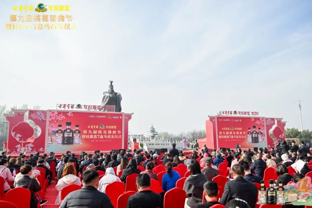 3月28日,古井贡酒·年份原浆第九届桃花春曲节暨轻度古7盒马首发仪式在安徽亳州酒神广场举行。