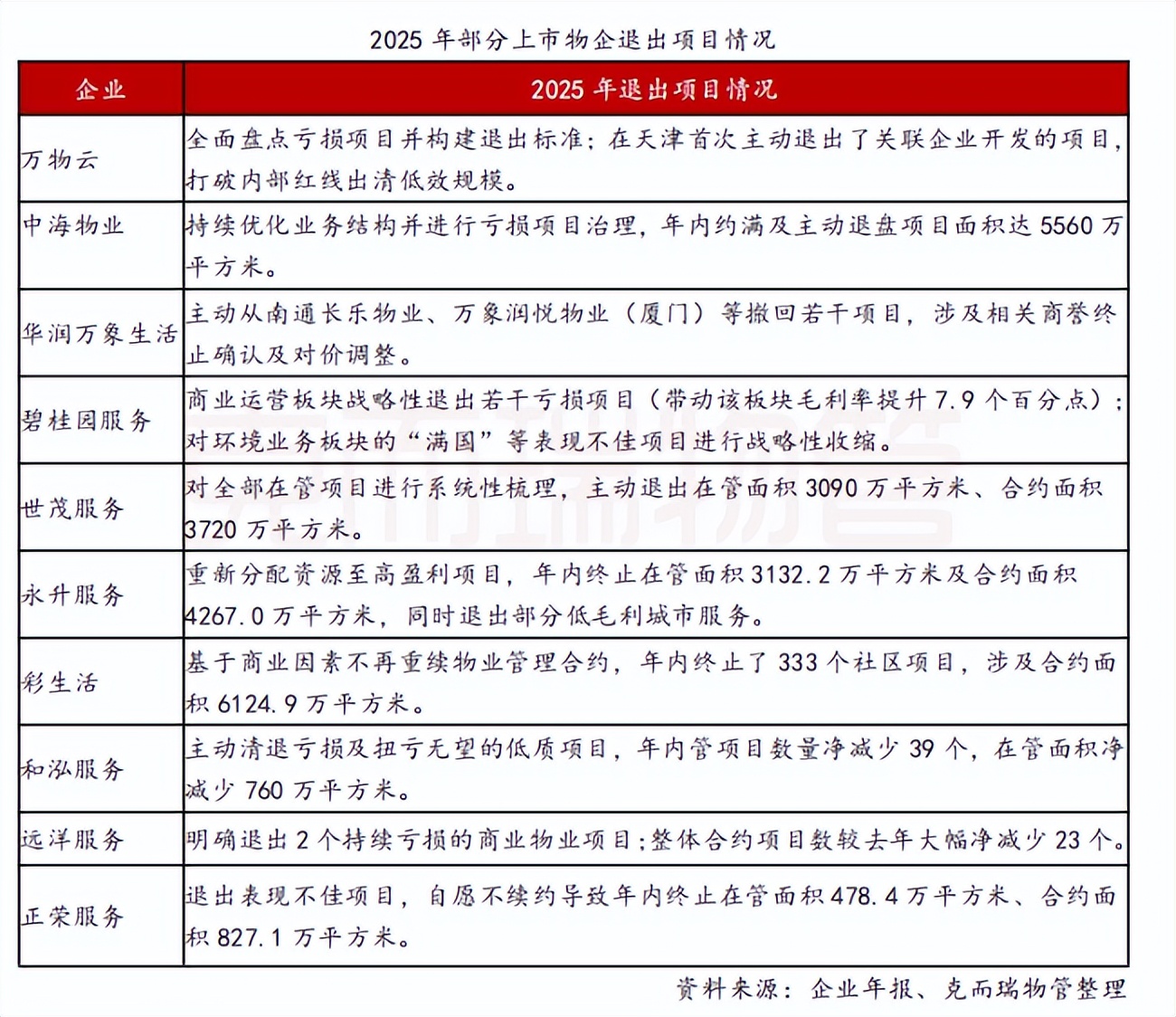 中海物业2025年约满不续及退盘项目总面积达5560万平方米,较2024年同比增长25%;碧桂园服务虽未披露具体退管面积,但在财报中也明确提及,已主动退出若干持续亏损的项目。