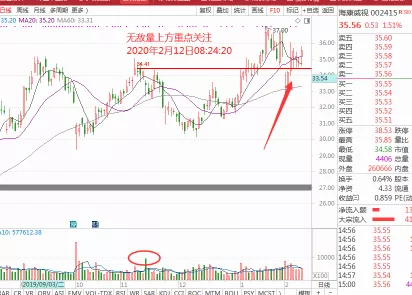 海康威视002415业绩优秀,本周悄悄站上无敌量上方,趋势依旧是多头排列,唯一不足的就是涨幅过高,但是按照技术派的逻辑,没有最高只有更高,可重点关注,如图: