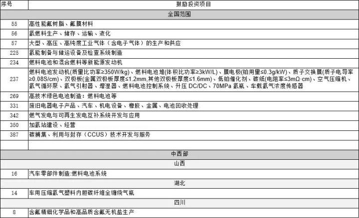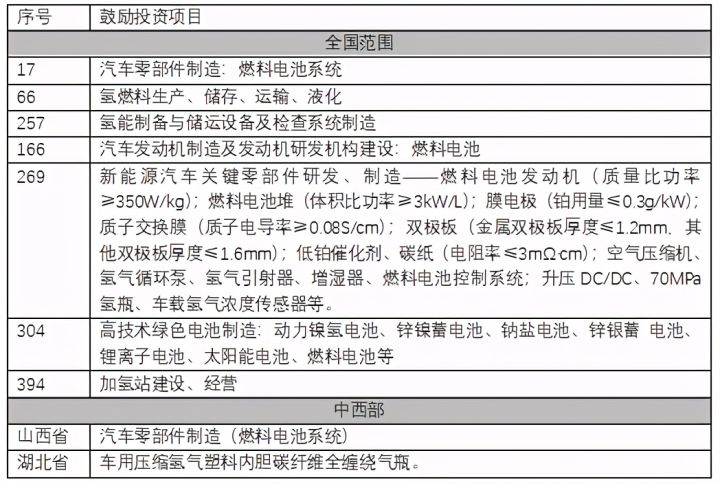表1:氢能及燃料电池相关鼓励开放项目