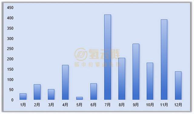 这与企业所反馈的情况相吻合,据氢云链调研,较多燃料电池相关企业反映上半年国内燃料电池市场不太理想,而到了下半年则普遍反映显著好转。