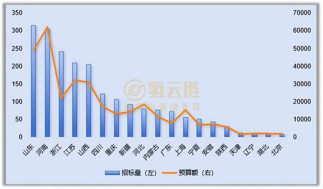 一、总体情况:招标量2040辆、预算额超32亿,鲁豫浙再次位居前三