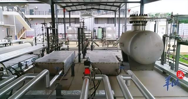 由南方电网广东广州供电局研发并投运的电氢双向转换装置,位于广州南沙小虎岛电氢智慧能源站。从外观上看,纵横交错的“钢管森林”旁矗立着三个银灰色集装箱,以及一个小型储氢罐,这个布局看似简单可谓内有乾坤。