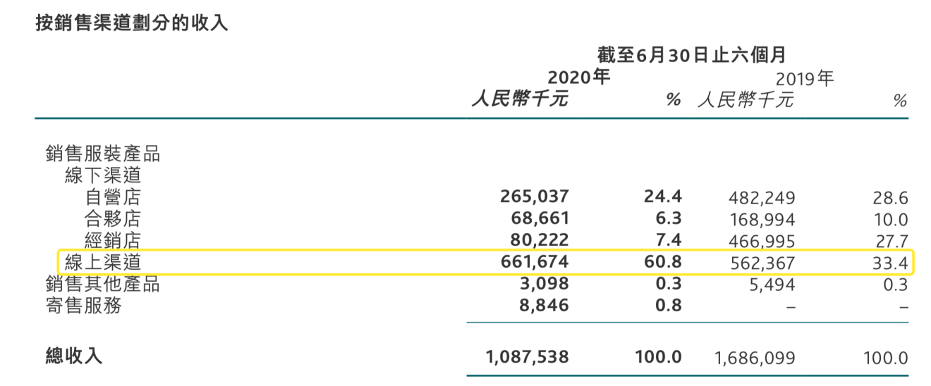 据财报显示,慕尚过去6个月中,线上渠道销售保持高速增长,销售额高达6.61亿元,同比增长17.7%。慕尚的各销售渠道中,线上渠道销售位列第一,收入占比高达60.8%。那么慕尚线上渠道这一块的收入是如何在疫情中逆势增长的呢?