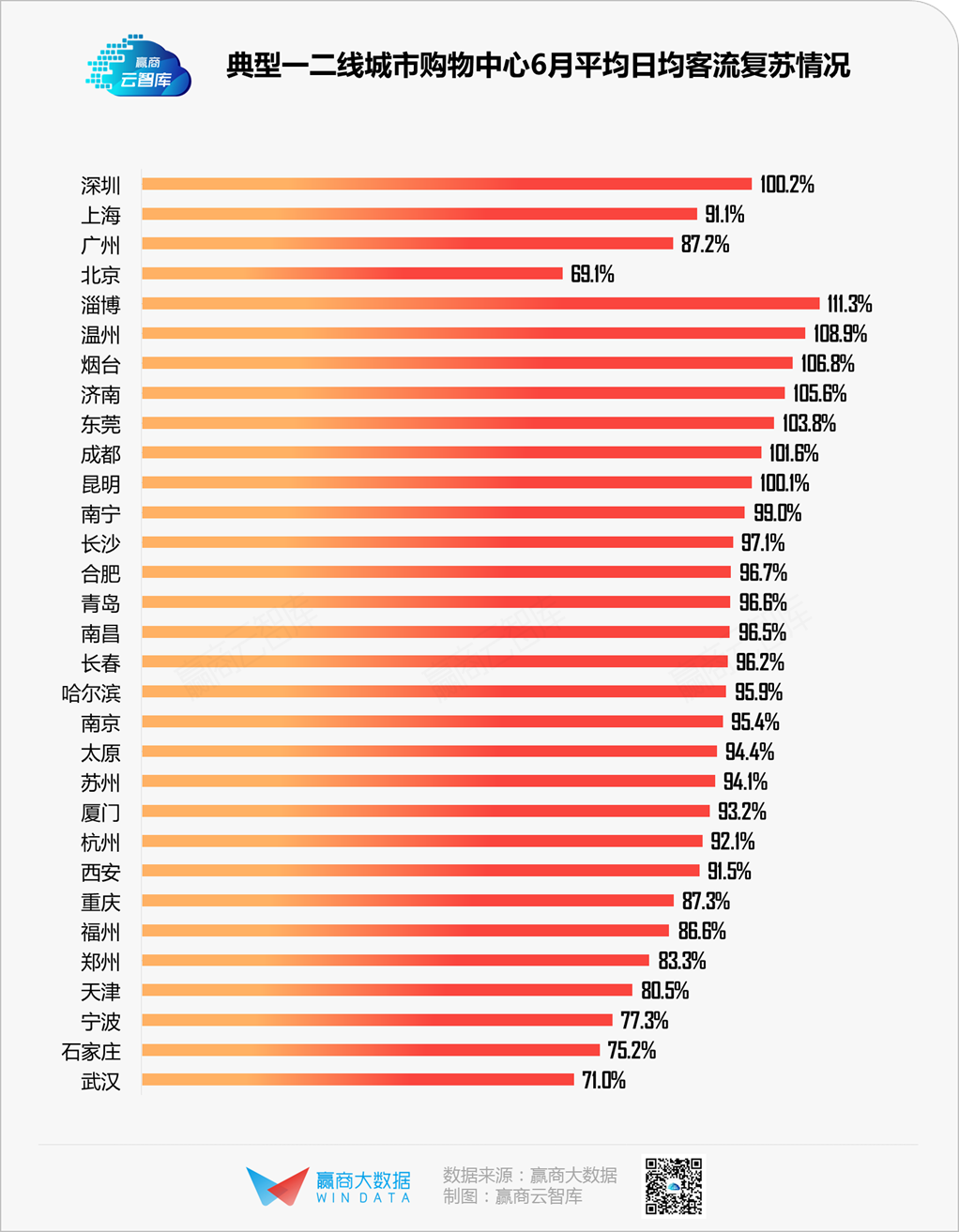汇客云对商场的客流调研结果显示:随着国内疫情得到控制,购物中心客流持续回暖, 2季度客流已经恢复到正常水平的66%,而3季度客流还在加速的回暖当中。根据赢商大数据监测,全国典型一二线城市购物中心6月平均日均客流已复苏至疫前水平的92.9%。这也从侧面证实了下半年服装板块有望全面回暖这一趋势。