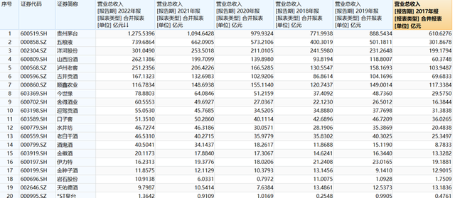 通过上表可以看出,在目前20家A股白酒上市公司中,2022年习酒营收可以排名第六位。排在习酒之前的上市白酒企业分别为:贵州茅台、五粮液、洋河股份、山西汾酒和泸州老窖。