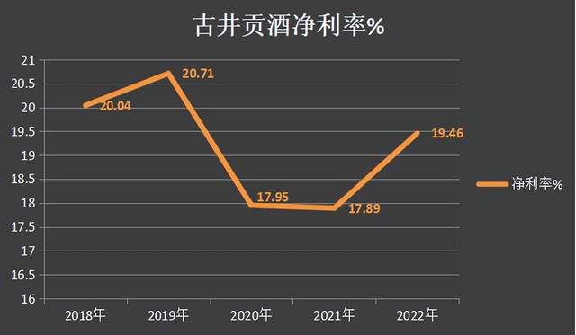 同时,过度的广告营销投入也严重拉低古井贡酒的净利率。据Wind数据,古井贡酒的销售净利率从2018-2022年依次为20.04%、20.71%、17.95%、17.89%和19.46%。