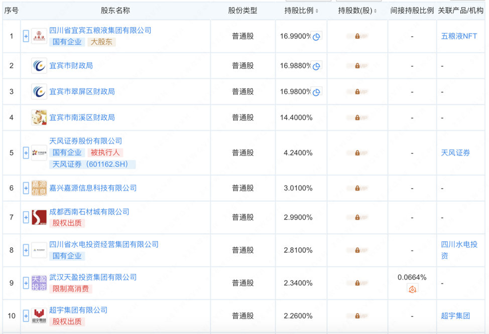 据天眼查公开信息显示,该行第五大股东天风证券被列为被执行人;第九大股东武汉天盈投资被限制高消费。其他持股比例较少的如宜宾恒旭窑炉科技、无锡中住集团、四川省花园实业集团、宜宾市远大贸易,这几家股东均被列为失信被执行人、限制高消费。