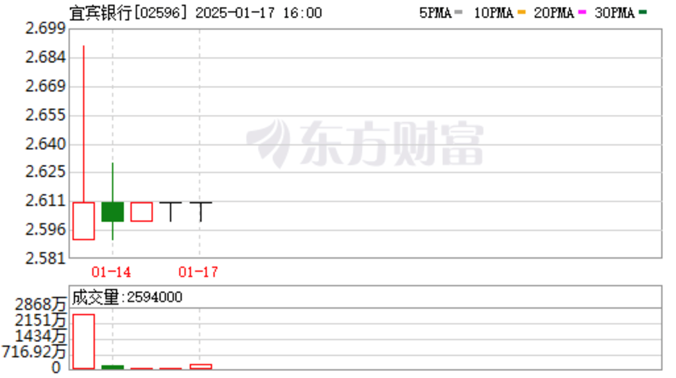 而在接下来的1月15日、16日和17日,宜宾银行的股价一直在2.60-2.61港元/股徘徊,成交量和成交额也都位于低位。