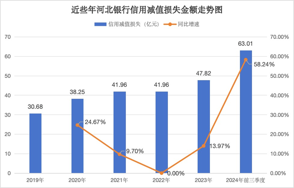 数据显示,截至去年三季度末,河北银行的信用减值损失为63.01亿元,较2023年前三季度多出了23.19亿元,同比增幅58.24%,比2023年全年计提的信用减值损失还多,如果该行第四季度没有停止对不良资产的核销速度,反而不断加码,那么河北银行在2024年全年净利润录得近20%的骤然降幅,也就解释得通了。