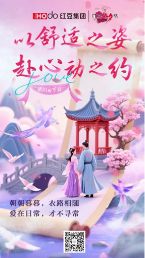 爱意七夕,舒适栖息。自2001年开始,红豆七夕节作为红豆集团一年一度的文化盛事,始终致力于倡导中国人过自己的情人节,传递文化认同,增强文化自信。“中国情人节”,不仅是关于情侣之间的浪漫,更涵盖亲情、友情与悦己之情。在这个以爱为名的节日里,红豆既颂扬浪漫,也关怀每一份相处的舒适自得。作为全国文明单位,红豆集团将持续通过激活“我们的节日”,把中华优秀传统文化和红豆特色“情文化”深植于企业发展血脉