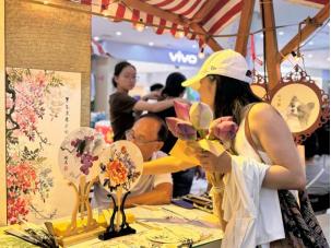 “七夕红粉季”期间,红豆万花城不仅有时下持续火爆的“苏超”巨幕赛事转播、创意满满的后备箱市集,也有“非遗+国风”主题的荷花市集、“汉韵霓裳 缘聚京口”七夕青年汉服课堂体验,还有宠粉放价的啤酒龙虾美食节、万花零食节等畅玩活动,吸引大批市民游客驻足流连,特别是受到注重社交属性的Z世代群体及亲子家庭的广泛欢迎。