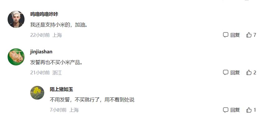 产品体验方面,网友们各执一词。网友“数字密码都来米”等吐槽小米车门问题,如打不开车门等,此言论引发了不少人的共鸣;然而,“呜噜呜噜咔咔”则坚定支持小米,为其加油打气。此外,“jinjiashan”发誓不再买小米产品,“陌上猪如玉”认为不必到处宣扬。不同观点激烈碰撞,反映出消费者对小米产品既有着期待,也有着不满,小米在产品细节上的表现成为了消费者关注的重点。