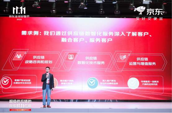 11月11日,2025京东11.11媒体开放日在北京举行。作为一家以供应链为基础的技术与服务企业,京东的发展与创新紧紧围绕“供应链”这一核心,基于二十多年来锤炼的供应链基础设施能力,以科技创新助力现代化产业体系建设,展现超级供应链的京东11.11的应用成果。