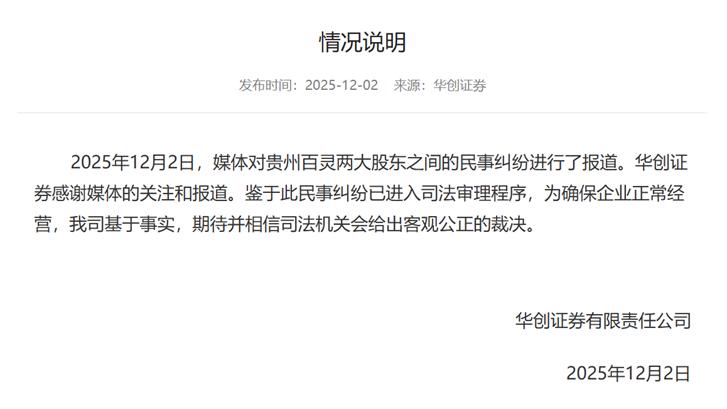 被指夺权贵州百灵?实控人和华创证券各执一词