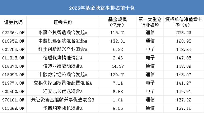 2025年科技行情贯穿全年,超过90只基金业绩翻倍,从中诞生“冠军基”。