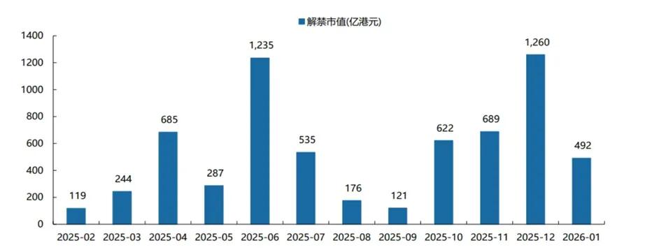 2025年上半年的IPO活跃为年末市场积累了明显的解禁压力,其中12月单月解禁规模高达约1260亿港元,对市场流动性及投资者情绪形成压制,并成为11月中旬以来港股加速调整的因素之一。伴随2026年1月解禁规模预计回落至500亿港元以下,市场面临的资金压力有望得到显著缓解。与此同时,经过此轮调整,港股科技板块的估值已逐步接近2024年以来的历次低位区间,长期配置价值逐步显现,或已进入左侧布局区域。