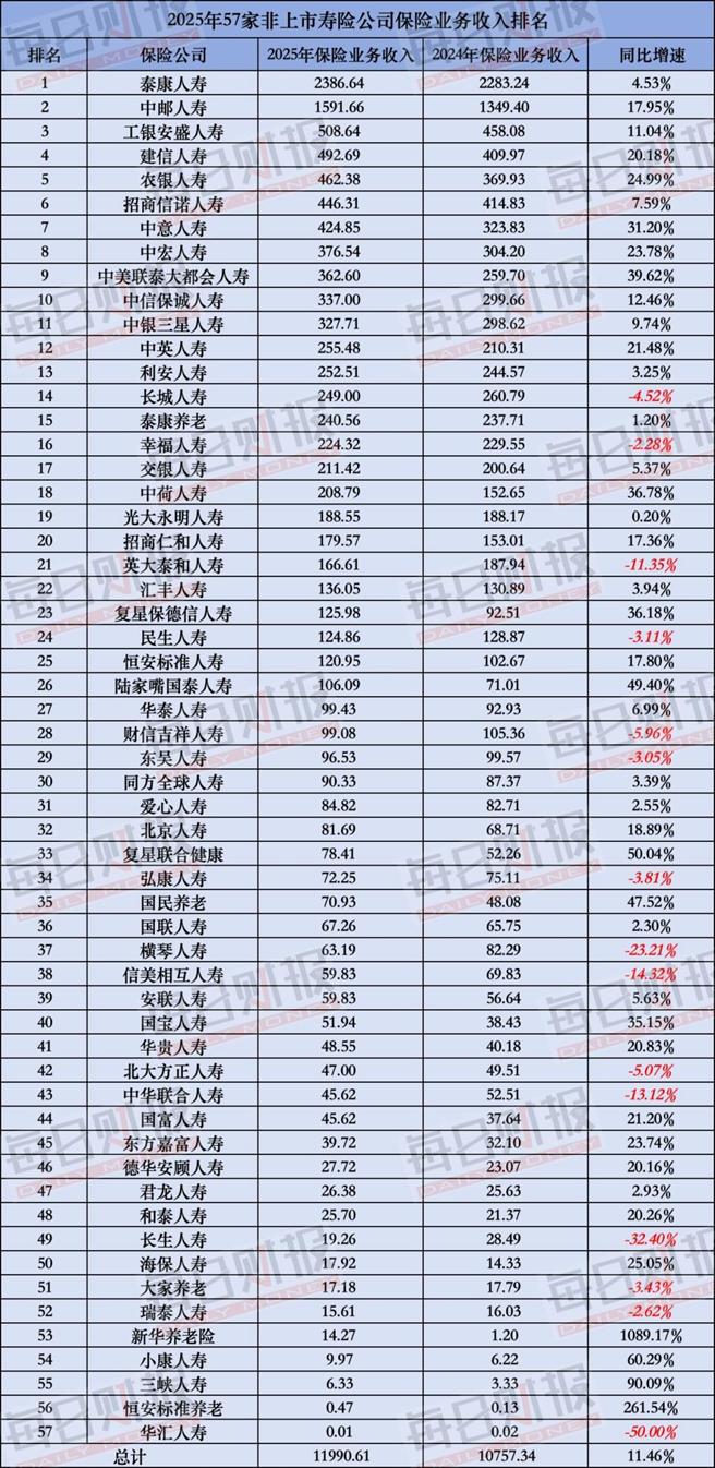 2025年非上市寿险公司业绩放榜:保费近1.2万亿,净利暴涨