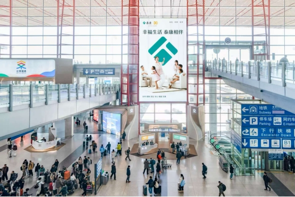 (2026年1月,泰康全新品牌视觉亮相首都机场T3 航站楼)