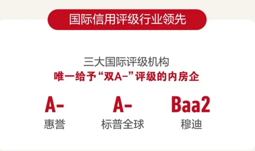 值得注意的是,中海地产是目前唯一获得两家国际评级机构给予“A-”评级的内房股,反映出外部对其可持续发展能力的认可。在行业平均融资成本攀升的背景下,中海地产凭借其央企背景与稳健报表,将平均融资成本控制在2.8%的行业最低区间。