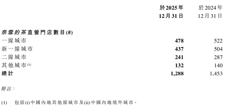 为进一步削减成本,奈雪选择主动收缩直营门店规模,这与其他新茶饮上市公司的举措截然不同。2025年末,奈雪的门店数量为1646家,其中直营门店1288家。相比2024年,其直营门店净减少165家。