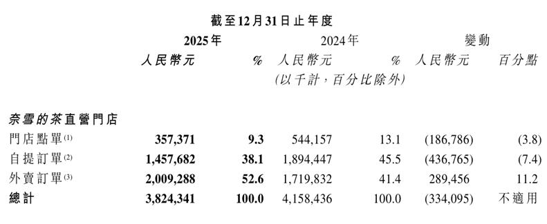 《每日财报》注意到,面对业绩亏损困境,奈雪主动收缩直营门店规模,2025年闭店超过160家。经过直营门店调整后,奈雪的单店平均销售额和订单量有所增加,但是每单平均价格出现下滑。