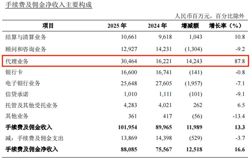手续费及佣金净收入达880.85亿元,同比高速增长16.6%。代理业务收入同比激增87.8%,成为最大亮点,主要得益于财富管理转型深入推进,理财和代销基金收入大幅增加,大财富管理相关收入总计达357亿元,切实转化为业绩新增长极。
