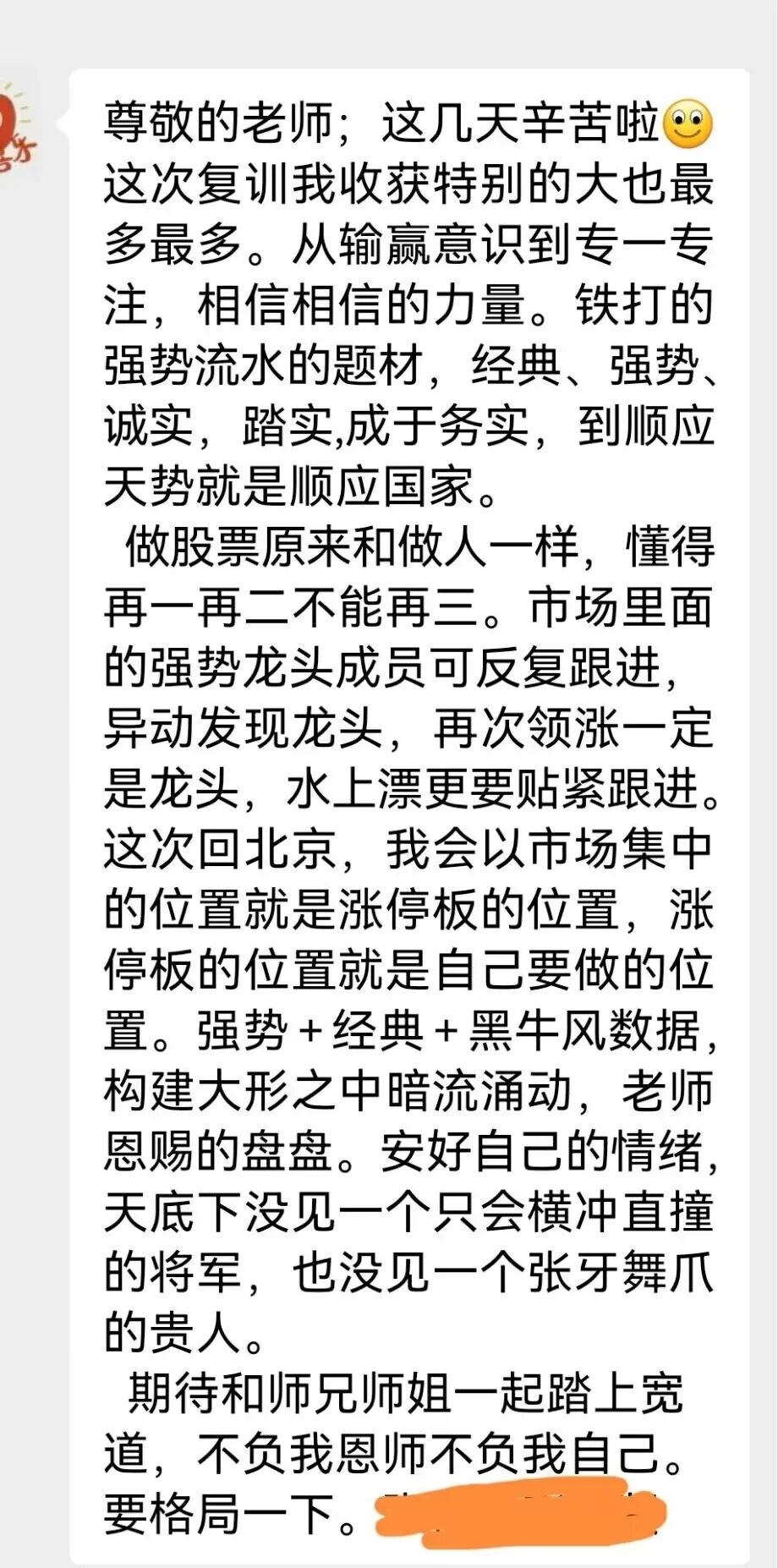 而今,培训课已结束,同学们即将踏上归程。愿你们在投资的道路上,能够顺风顺水,一路向前,最终找到那个真正让自己舒服、让自己盈利的赢利圈。