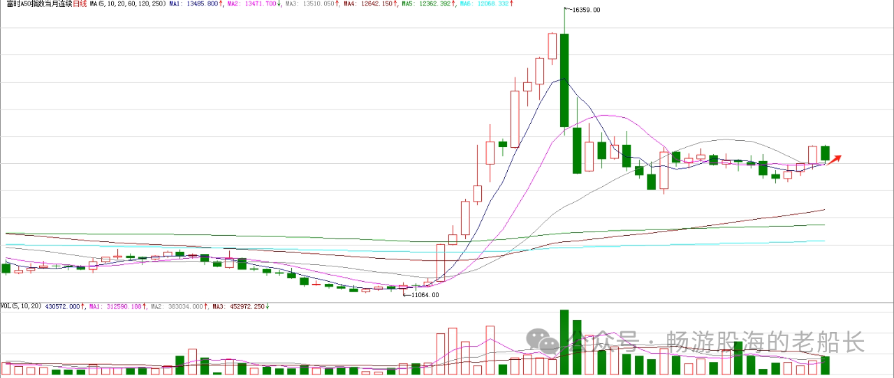 上证50指数,今天收出了调整信号。但是,从六十分钟级别的走势来看,已经调整了三个周期。明天开盘第一个小时就是变盘点了,所以,很有可能走出变盘走势,结束调整。这和富时A50指数释放的信号基本一致。