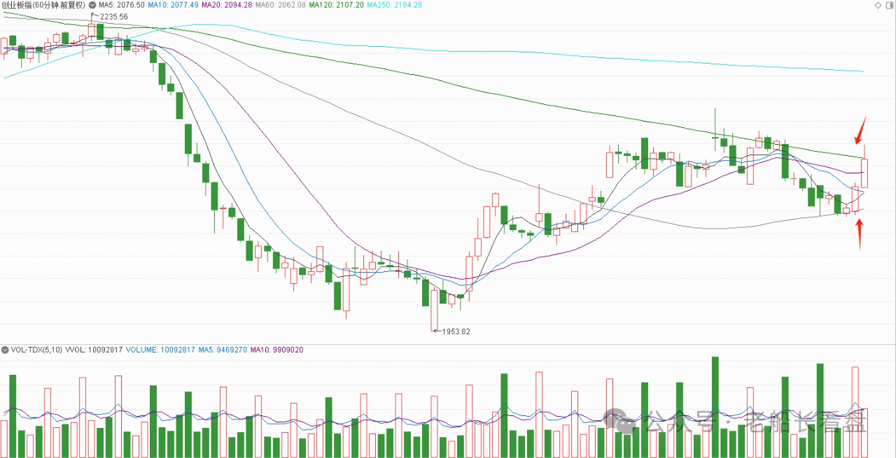 在昨天的分析中,本人指出了今天早盘大盘指数有六十分钟级别的反弹,不过早盘的反弹力度比预期的大一些。盘面上看,绝大多数个股上涨,跌停4家,人气比较高。A股,开启波段上涨的信号是什么? 中午时间比较紧张,重点分析上证50指数和创业板指数,下午收盘之后,再重点分析上证指数和科创50指数。 上证50指数,六十分钟级别的走势来看,经过昨天四个小时调整和早盘第一个小时的调整之后,该级别有效调整周期到了5,促成了今天早盘大盘指数的反弹。早盘第二个小时的K线,实体比较大,上影线比较长,这是因为大盘指数运行到了该级别的十单位均线和二十单位均线处。由于调整周期较短,十日均线下行的速度比较快,给大盘指数带来了比较大的压力,于是导致指数冲高回落。大盘指数要想直接走强,就需要顶上去,午后需要强势站上六十分钟级别的十单位均和二十单位均线。 切换到日线来看,上证50指数相对于上证指数来说,调整比较充分。接下来即便继续调整,幅度也不大。目前,该指数日线级别的三条中短期均线调整周期比较充分,已经处在粘合状态。因此,上证50指数的调整已经到了尾声。但是要想直接走强,需要站稳2580点,也就是二十日均线,不然的话,接下来还会小幅度震荡几个交易日。 上证指数,直接走强的条件较为苛刻,需要站稳3252点,且成交量放大明显。 创业板指数,日线级别的走势来看,今天受到了二十日均线的支撑。最近的震荡,形成了一个平台,要想直接终结调整,需要今天站稳2121点,且成交量明显放大。不然的话,创业板指数会多调整几天,不过后期还是有波段上涨。 六十分钟级别的走势来看,经历了5+4个有效调整周期之后,到了变盘节点,导致了早盘两个小时的强势上涨。但是,目前该级别的半年线下行速度比较快,二十单位均线与这条均线之间的乖离率比较大,只有午后强势站上半年线,才能促成反转走势出现。不然的话,还会继续进行调整修复。 所以,大盘指数指数能否直接走强,还需要下午进一步观察。不过,即便接下来大盘指数有调整,幅度也不大了,春季行情不远了。