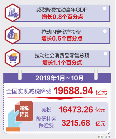 数据表明,今年前10个月,全国实现减税降费19688.94亿元(其中减税16473.26亿元)而民营企业各项政策合计减税10511.84亿元,占全部减税数额的比例达到63.8%。