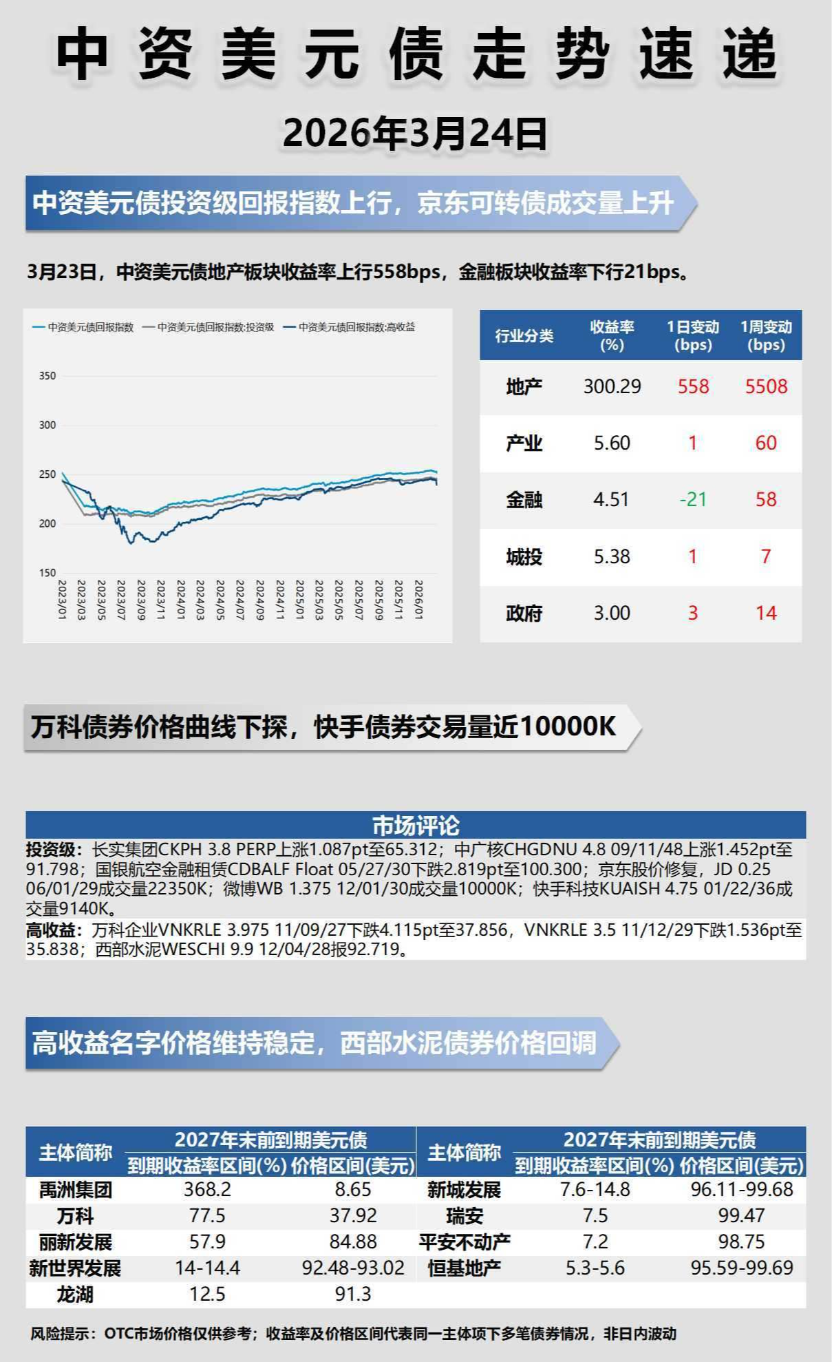 中资美元债(3月24日) | 板块收益率走势速递