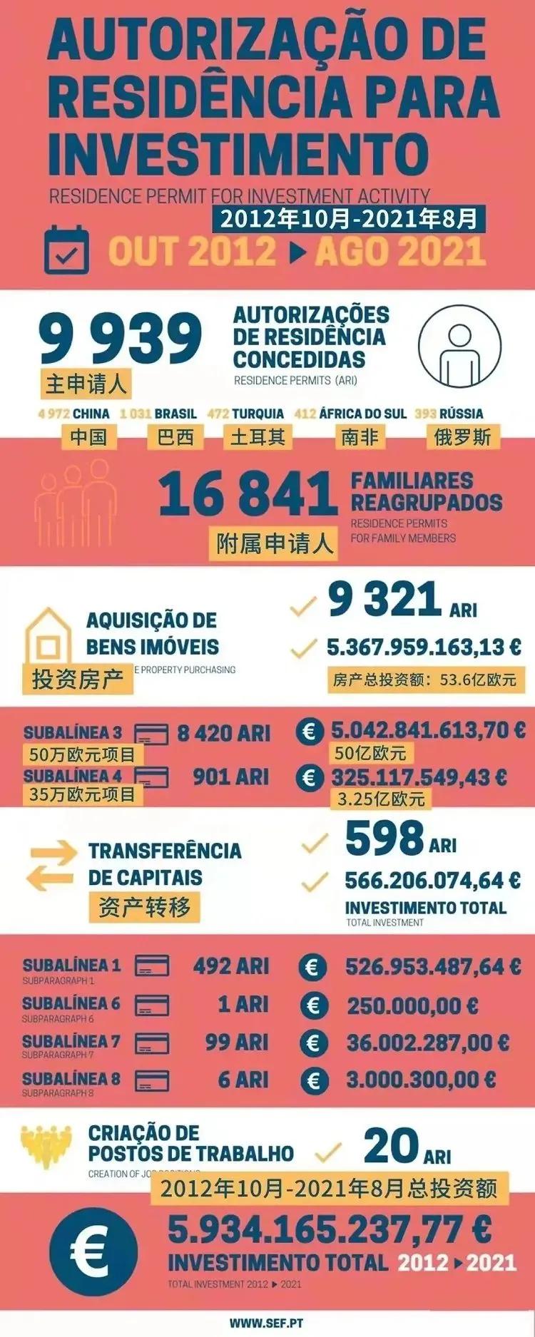 2021年8月葡萄牙移民数据:黄金居留许可申请量大涨
