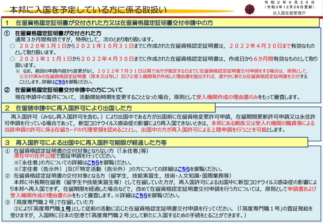 12月28日,日本再次发布了关于延长在留资格认定证明书有效期的通知,具体调整如下: