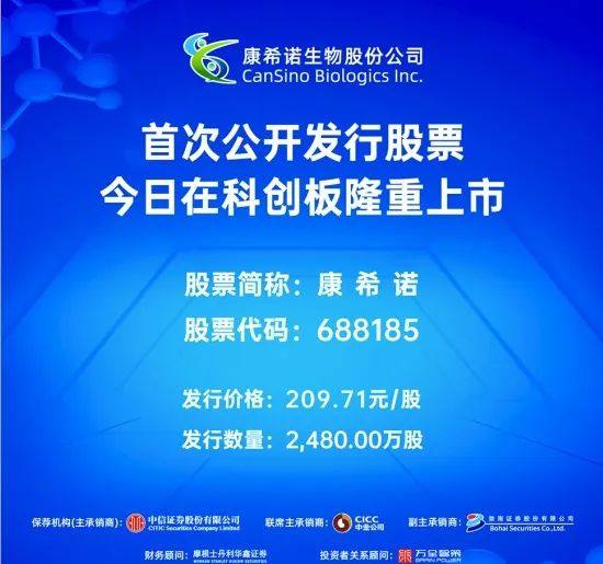 中一签赚44万的康华生物还历历在目,今日又有一只大肉签上市!被称为“新冠Yi苗第一股”的“康希诺”今日上市交易,其发行价为209.71元/股,为科创板第二高价股。