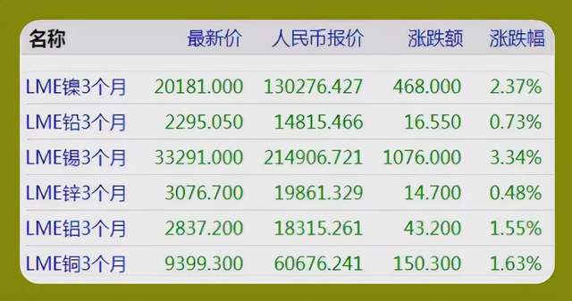 (沙:伦敦有色金属交易所即LME今夜各品种皆收涨(绿色为涨)——