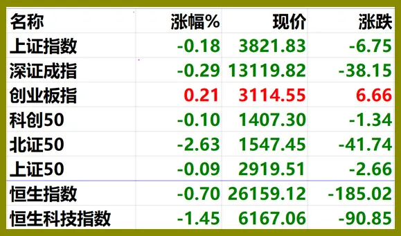 恒生指数主连夜盘收跌0.05%,报26188点;恒生科技指数主连夜盘收跌0.28%,报6161点。