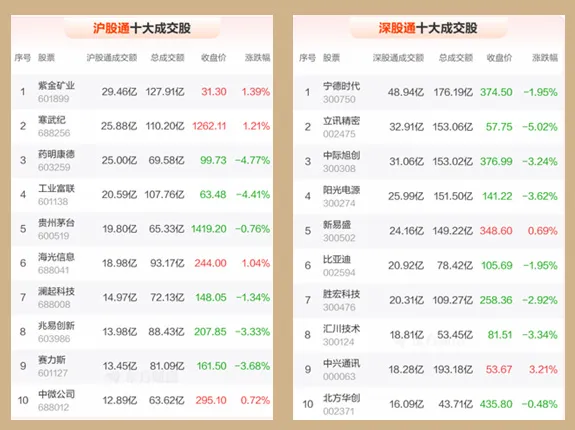 4、北向资金共成交3261.62亿元,占两市总成交额的13.85%——