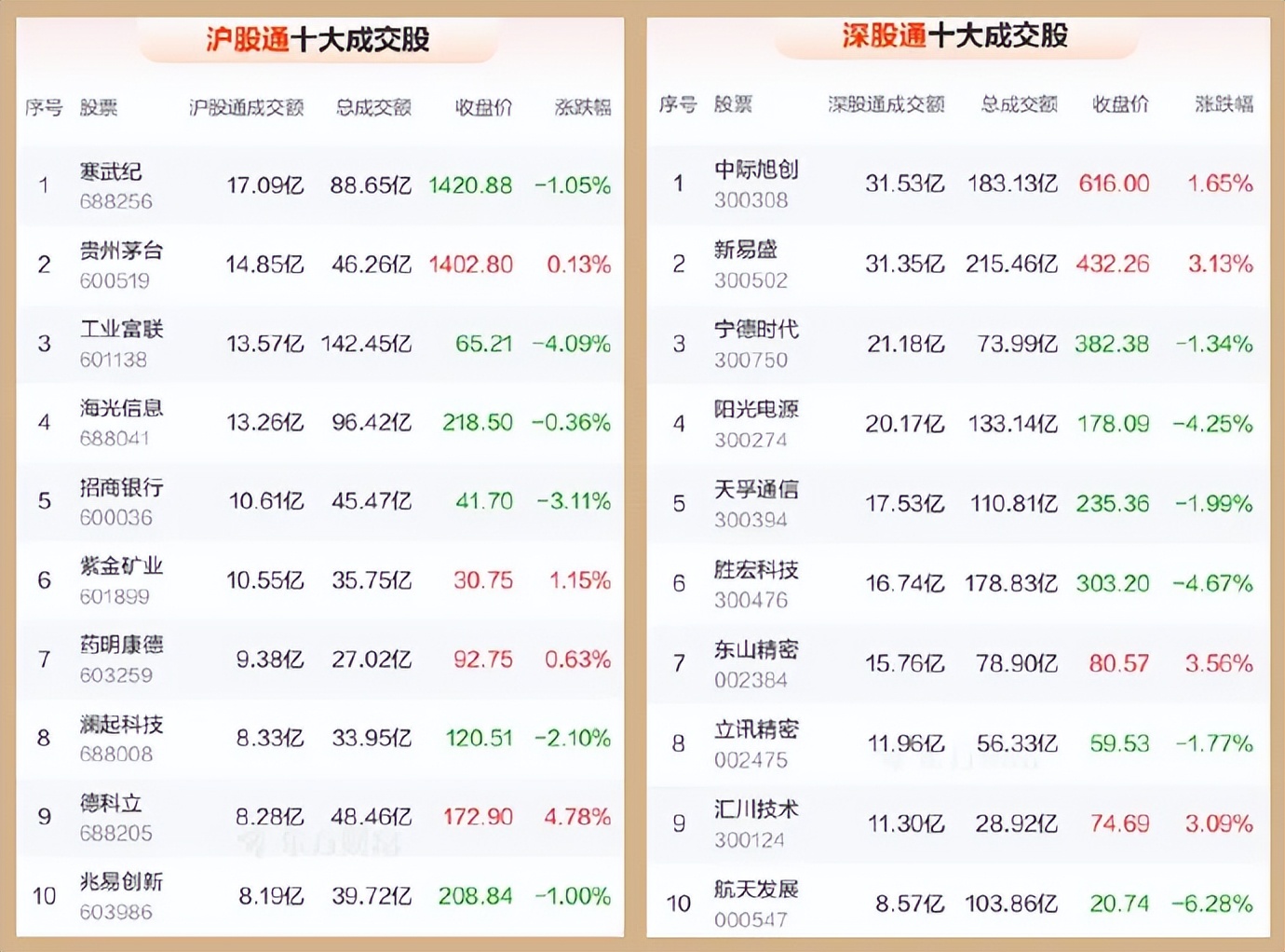 5、北向资金共成交2044.14亿元,占两市总成交额的11.49%——