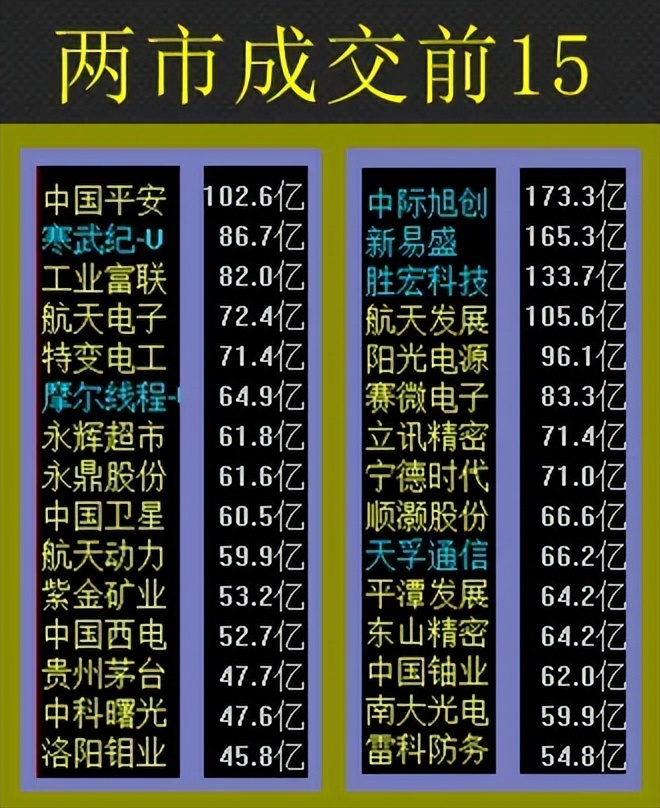 1、沪深两市合计成交17734.35亿元,成交额较上一交易日减少3187.71亿元。