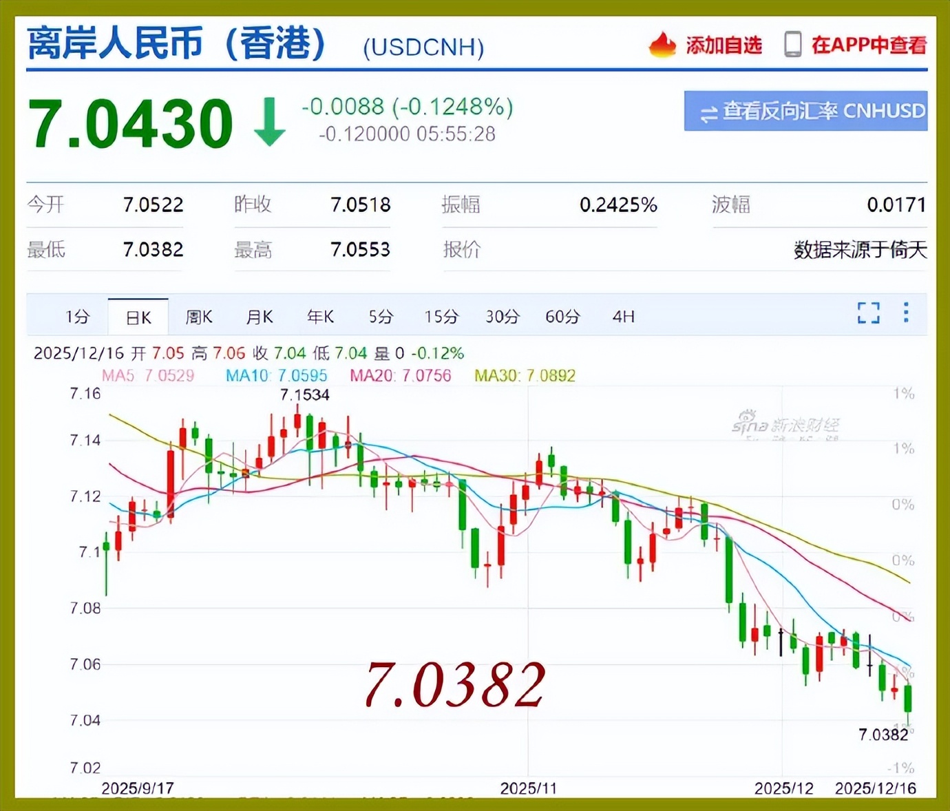 (沙:离岸人民币今日最多升值至7.0382元!