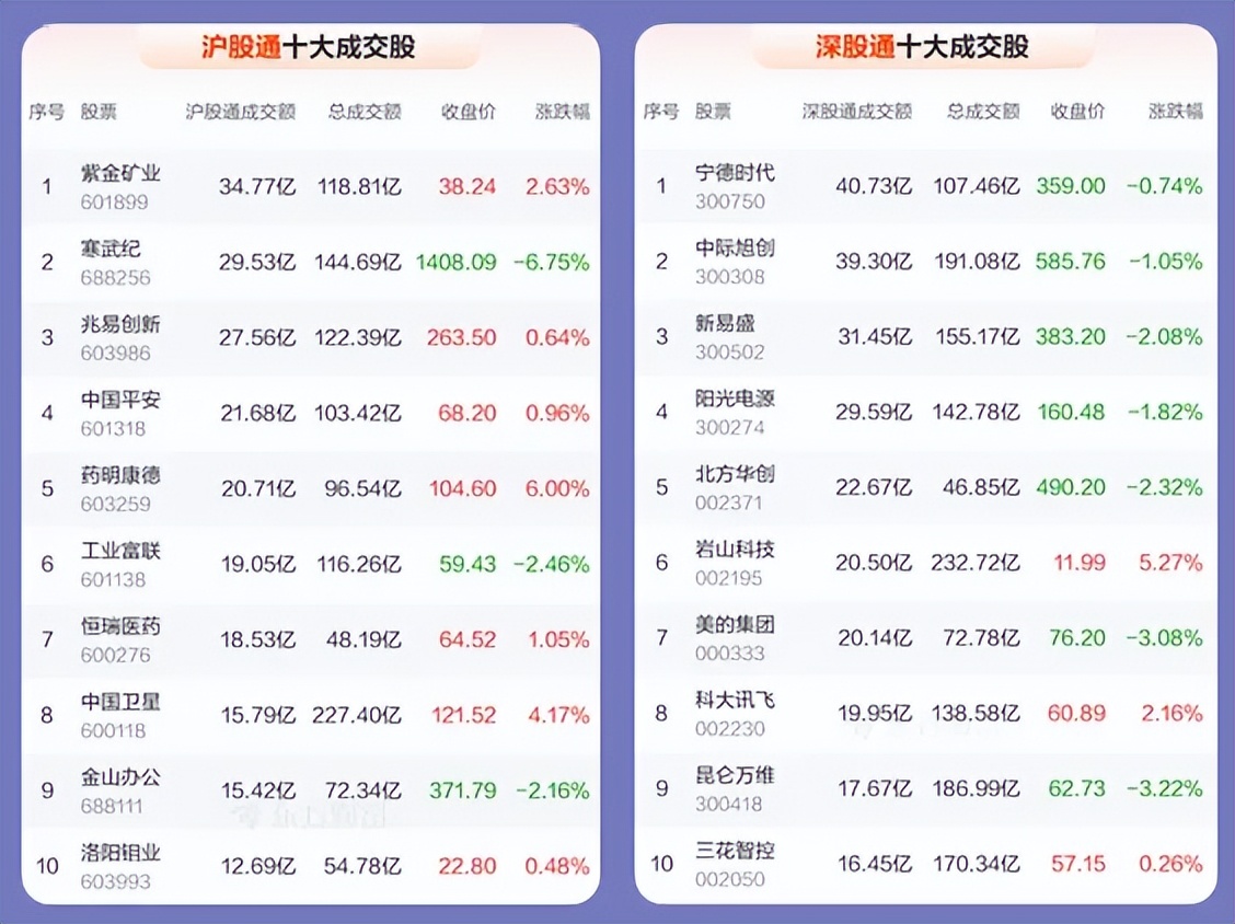 4、北向资金共成交4209.36亿元,占两市总成交额的11.53%——